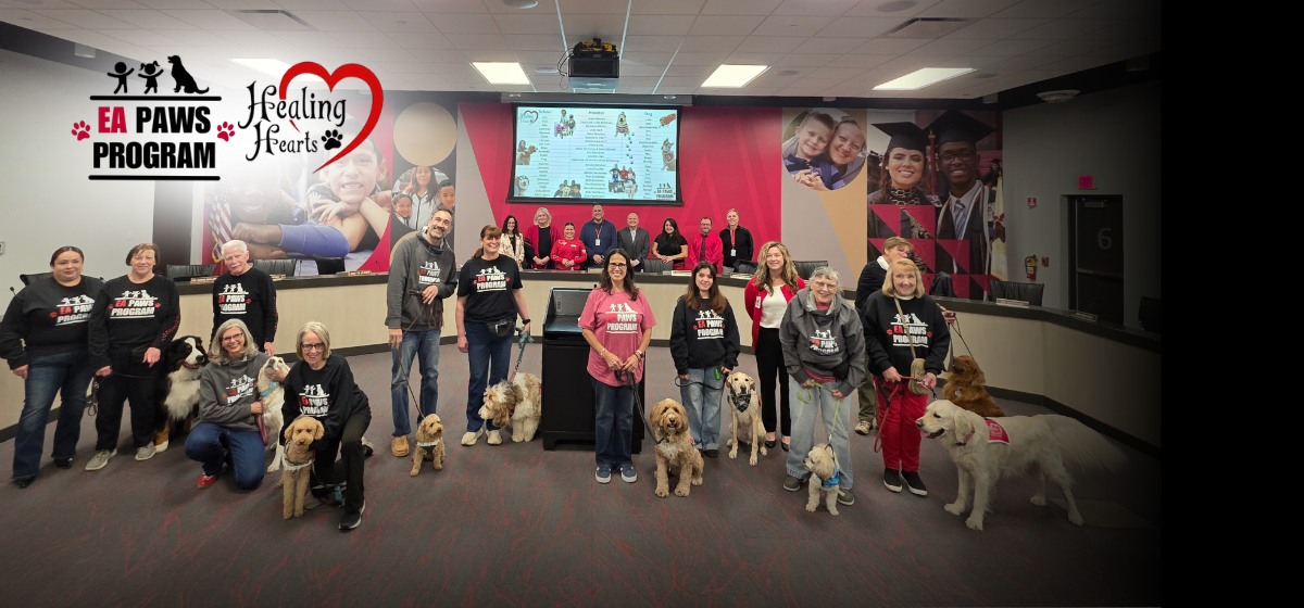 Since its launch in 2023, our EA PAWS program has grown into a powerful districtwide initiative focused on supporting the whole child. Through a strong and ongoing partnership with Healing Hearts, EA PAWS began as a vision to bring certified comfort dogs into our schools to enhance students’ emotional well-being. As of January 2026, every school in East Aurora has an active EA PAWS team, which is an incredible milestone that reflects our commitment to student support and positive school climate.