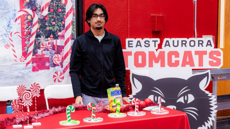 El pabellón deportivo de la escuela secundarias East Aurora se llenó de emoción y orgullo comunitario el sábado 6 de diciembre, con casi 2800 estudiantes y sus familias asistiendo a nuestra celebración anual “Posadas & Beyond”. El evento dio inicio a la temporada navideña con música festiva, tradiciones culturales y actividades para todas las edades. Las familias recibieron cientos de libros, abrigos, pantalones para la nieve y otros artículos de invierno gratuitos, mientras exploraban 23 puestos que ofrecían comida, manualidades, juegos y actividades prácticas. Los estudiantes disfrutaron de pintacaritas, una cabina de fotos y numerosas estaciones interactivas durante toda la tarde. Las apariciones especiales de Santa Claus y El Grinch se sumaron a la magia navideña, creando momentos inolvidables para nuestra comunidad de East Aurora. ¡Gracias a todos los que contribuyeron a que la celebración de este año fuera un éxito rotundo!